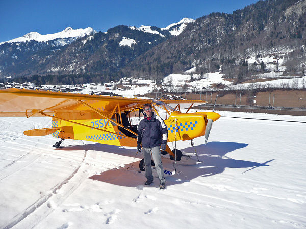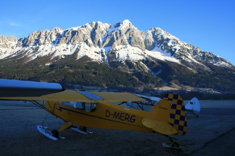 Tom Huber, in Germany, is enjoying the freedom of flying from the lowlands off pavement and landing on skis in places like this in the Austian mountains.