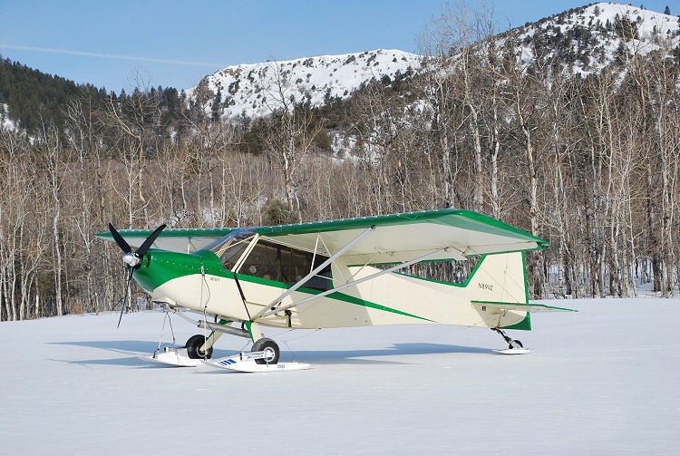 Mike Willey of Oakland, Maine flies his Rans 7 from a set of our Series 2000 wheel skis.