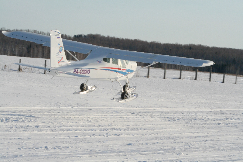 Ron Seyffer of Orillia, Ontario is enjoying our skis on his Kitfox.