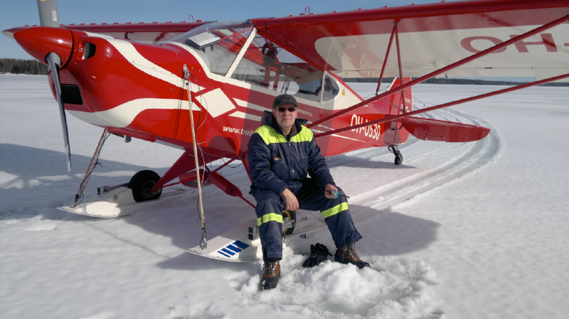 He's having fun flying off the paved runway of the Rockliffe Airport in Ottawa and landing where he chooses on the snow. -