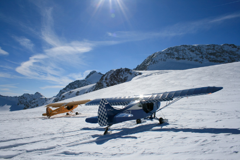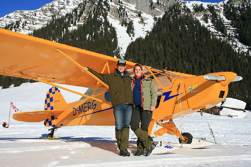 Tom Huber, in Germany, is enjoying the freedom of flying from the lowlands off pavement and landing on skis in places like this in the Austian mountains.