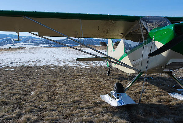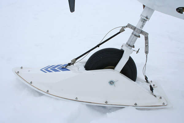 Mike Willey of Oakland, Maine flies his Rans 7 from a set of our Series 2000 wheel skis.